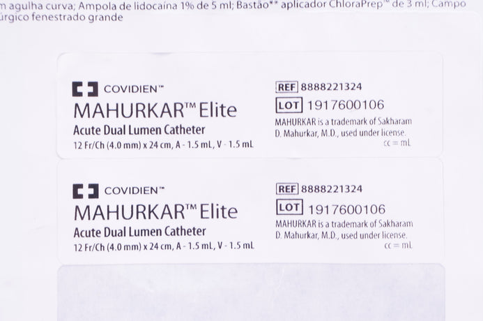 - Covidien 8888221324 Mahurkar Elite Acute Dual Lumen Cath. Tray 12Fr x 24cm