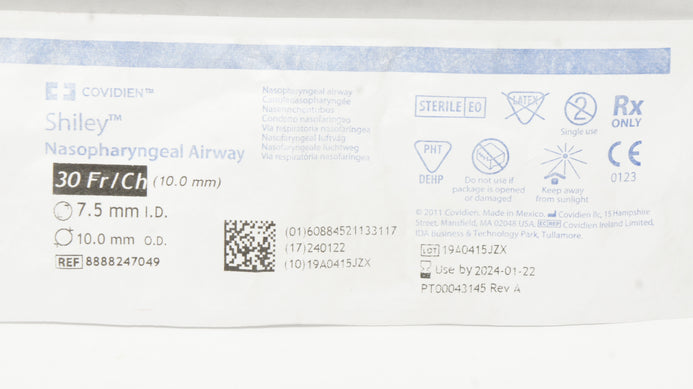 - Covidien 8888247049 Shiley Nasopharyngeal Airway 30Fr/Ch 7.5mmID x 10.0mmOD (x)