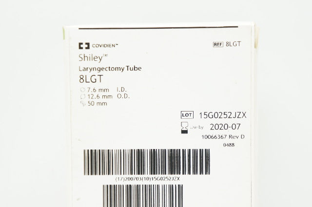 Covidien 8LGT Shiley Laryngectomy Tube 7.6mm I.D. x 12.6mm O.D. x 50mm (x)