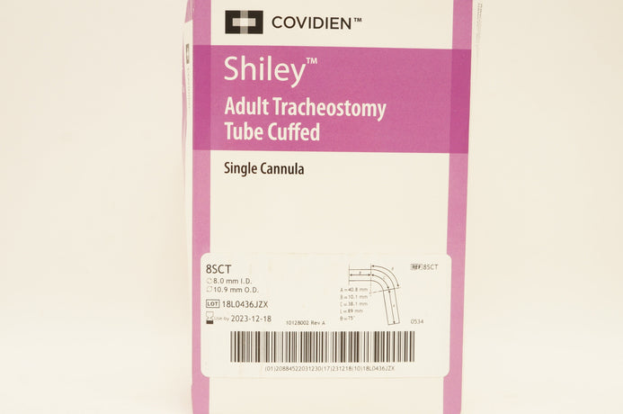 Covidien 8SCT Shiley Adult Tracheostomy Tube Cuffed Single Cannula 8.0mm x 10.9mm