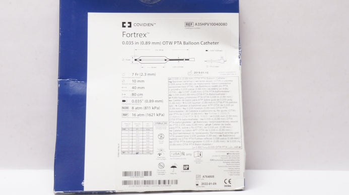 Covidien A35HPV10040080 Fortex OTW PTA Balloon Catheter 0.035inch x 10 x 40mm x 80cm