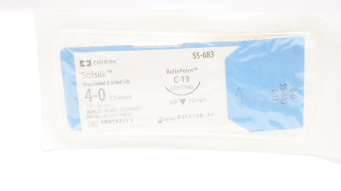 Covidien SS683 4-0 Sofsilk Wax Coated Stre, C-13 Cutting 3/8 19mm, 18inch (x)