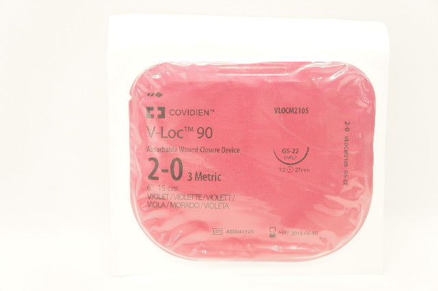 - Covidien VLOCM2105 2-0 V-Loc 90 Wound Closure GS-22 Taper 1/2 27mm 6inch (x)