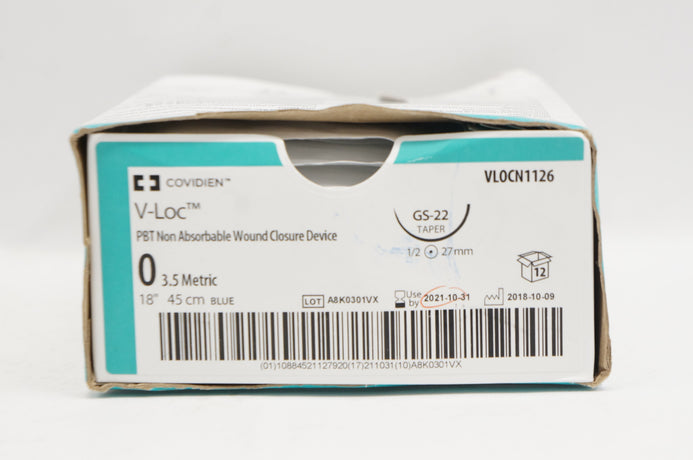 - Covidien VLOCN1126 0 V-Loc GS-22 Taper 1/2 27mm 18inch - Box of 12 (x)