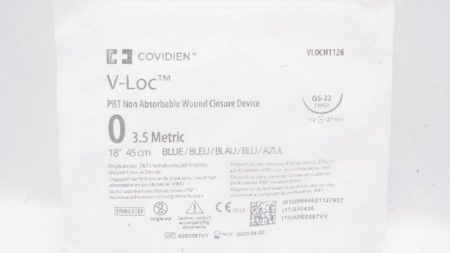 - Covidien VLOCN1126 0 V-Loc PBT GS-22 Taper 1/2cc 27mm, 18inch (x)