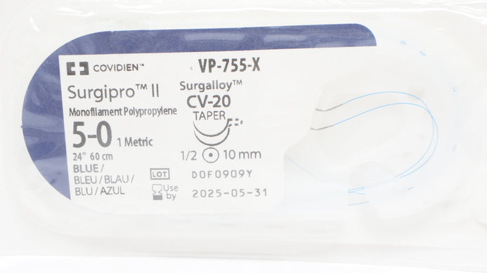 - Covidien VP-755-X 5-0 Surgipro II 24inch Blue Monofilament Stre. CV-20 10mm (x)
