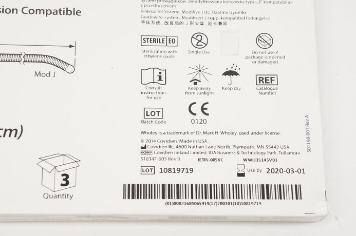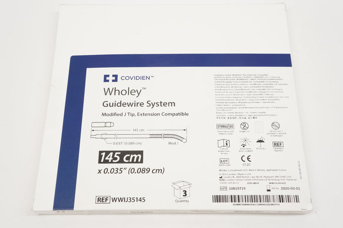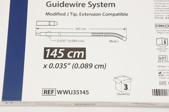 Covidien WWIJ35145 Wholey Guidewire Modified J Tip, 0.035inx145cm (x) - Box of 3