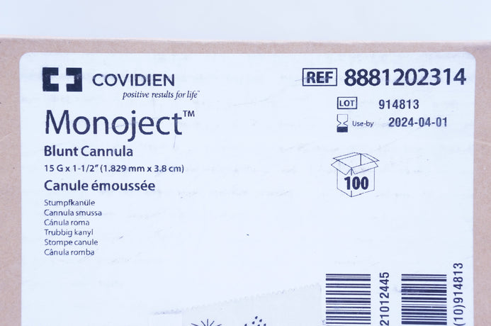 - Covidienn 8881202314 Monoject Blunt Cannula 15G x 1-1/2 inch - Box of 100