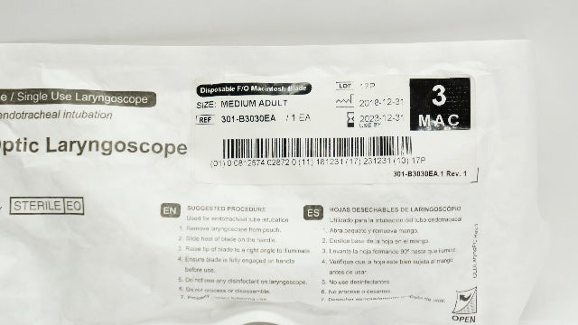 - Curaplex 301-B3030EA System Fiber Optic Laryngoscope, Medium Adult MAC 3