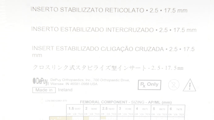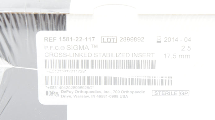 DePuy 1581-22-117 Sigma Cross-Linked Stabilized Insert 17.5mm, Size 2.5 (x)