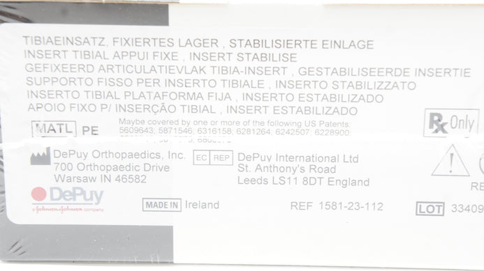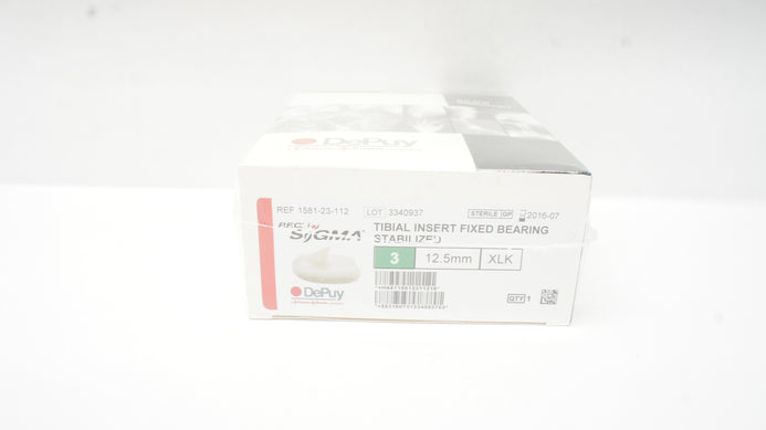 - DePuy 1581-23-112 Sigma Tibial Insert Fixed Bearing Stabilized 3, 12.5mm XLK (x)