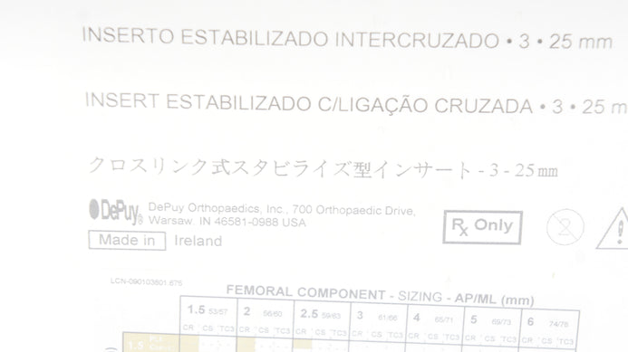 DePuy 1581-23-125 Sigma Cross-Linked Stabilized Insert 25mm, Size 3 (x)