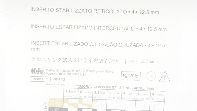 - DePuy 1581-24-112 P.F.C. SIgma Cross-Linked Stabilized Insert 4,12.5mm (x)