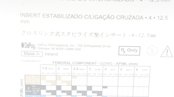 - DePuy 1581-24-112 P.F.C. SIgma Cross-Linked Stabilized Insert 4,12.5mm (x)