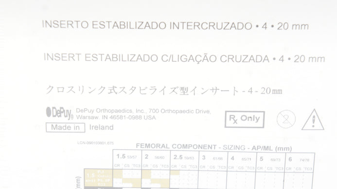 - DePuy 1581-24-120 Sigma, Cross-Linked Stabilized Insert 4, 20mm (x)