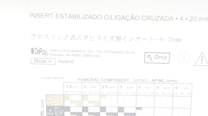 - DePuy 1581-24-120 Sigma, Cross-Linked Stabilized Insert 4, 20mm (x)