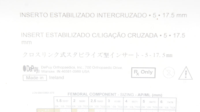 DePuy 1581-25-117 Sigma Cross-Linked Stabilized Insert 17.5mm, Size 5 (x)