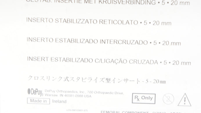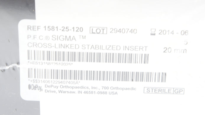 DePuy 1581-25-120 Sigma Cross-Linked Stabilized Insert 20mm, Size 5 (x)