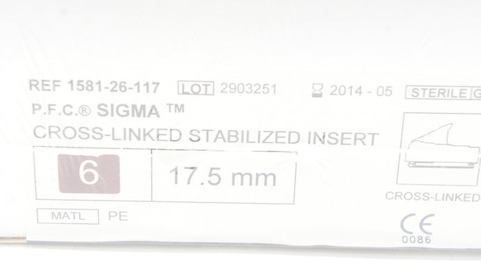 - DePuy 1581-26-117 Sigma Cross Linked Stabilized Insert 17.5mm, Size 6 (x)