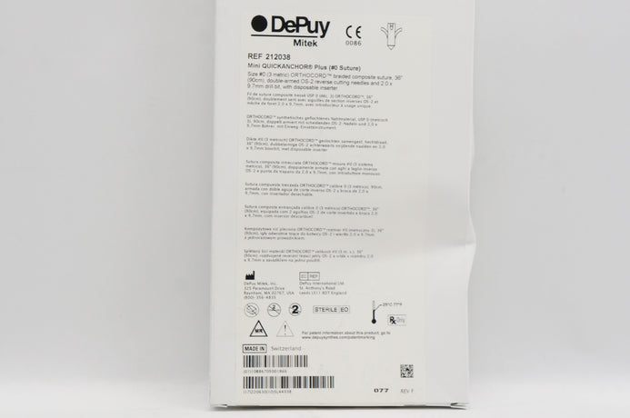- DePuy 212038 Mini QUICKANCHOR Plus #0 Stre.