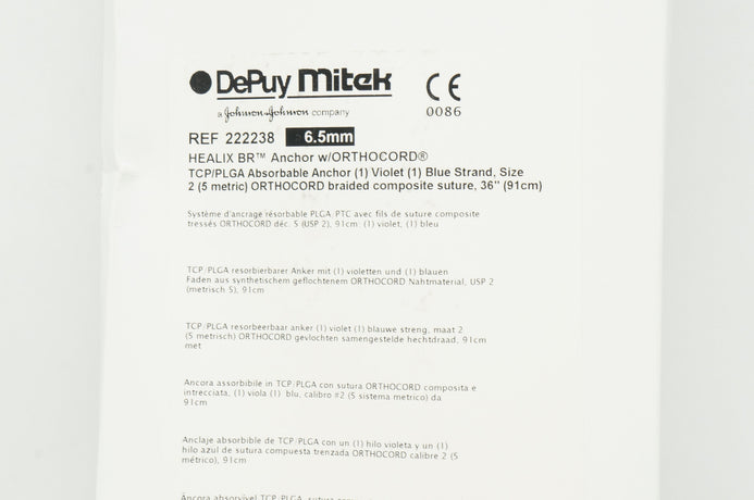 - DePuy 222238 HEALIX BR Anchor w/ORTHOCORD, 36inch (x)