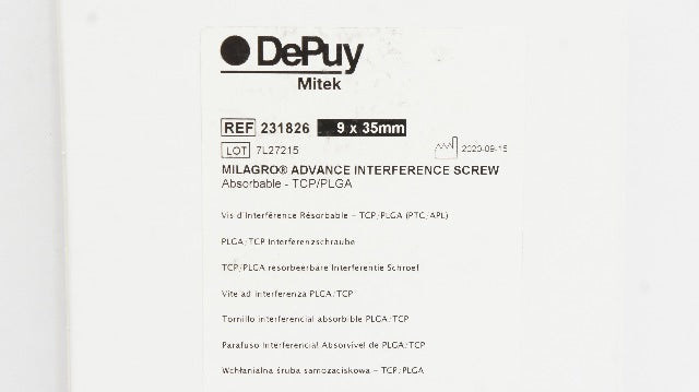 - DePuy 231826 Mitek Milagro Advance Interference Screw 9 x 35mm (x)