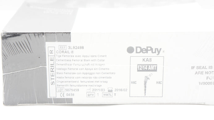 - DePuy 3L92498 Corail Cementless Femoral Stem w/Collar KA8 (x)