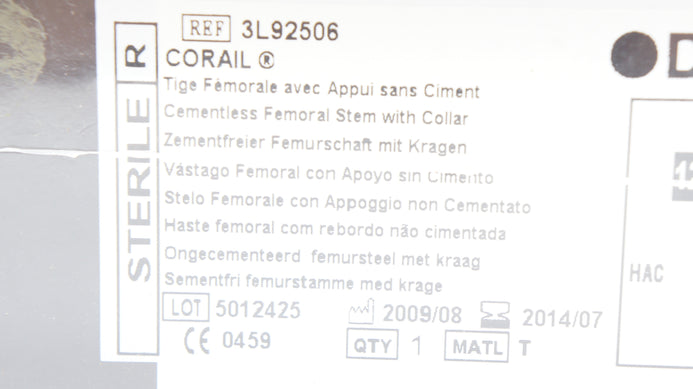 - DePuy 3L92506 KA16 Corail Cementless Femoral Stem w/Collar 12/14 AMT (x)