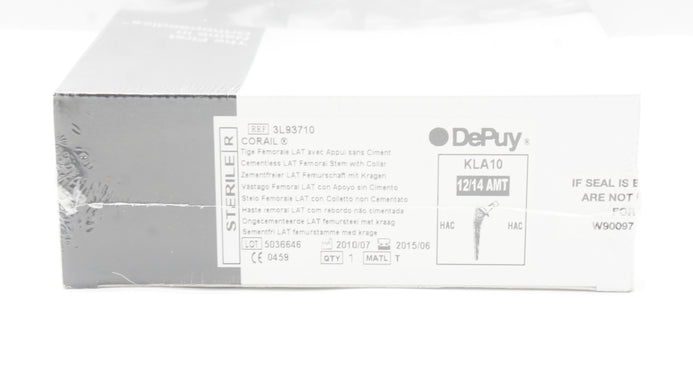 - DePuy 3L93710 CORAIL Cementless LAT Femoral Stem w/Collar, KLA 10, 12/14 AMT (x)