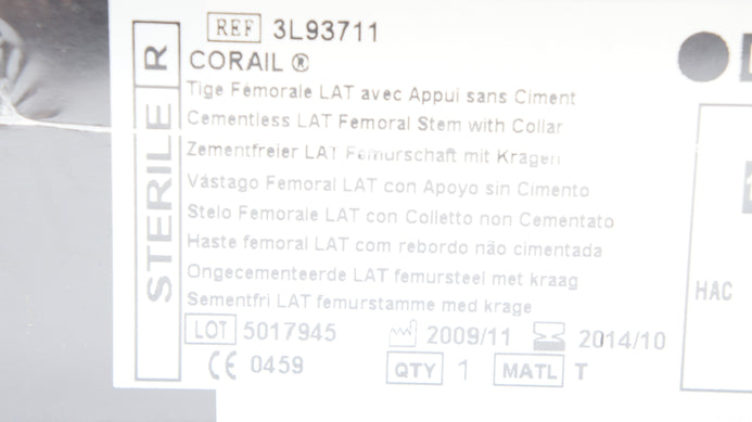 - DePuy 3L93711 Corail Cementless LAT Femoral Stem w/Collar KLA11, 12/14 AMT(x)