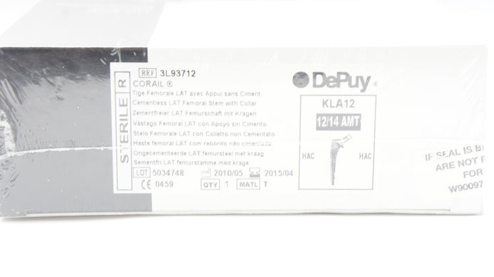 - DePuy 3L93712 CORAIL Cementless LAT Femoral Stem w/Collar, KLA 12, 12/14 AMT (x)