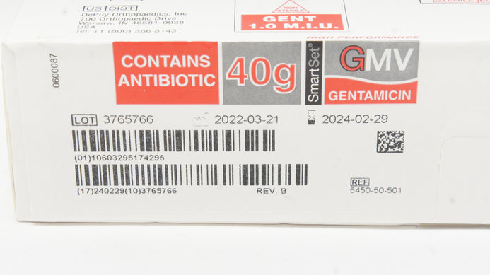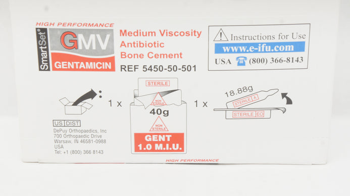 - DePuy 5450-50-501 GMV Gentamicin Medium Viscosity Antibiotic Bone Cement 40g (x)