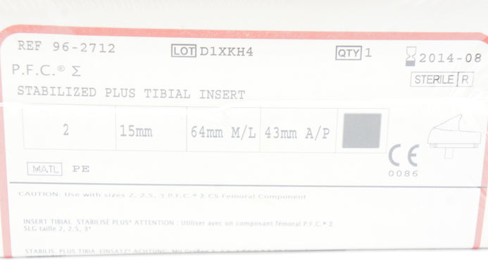 - DePuy 96-2712 Stabilized Plus Tibial Insert 2 x 15mm x 64mm x 43mm (x)