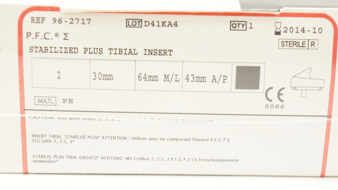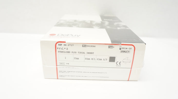 - DePuy 96-2717 Stabilized Plus Tibial Insert Size 2, 30mm x 64mmM/L x 43mmA/P (x)