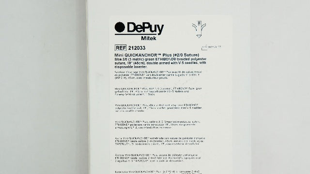 - DePuy Mitek 212033 2/0 Mini Quickanchor Plus 2/0 Braided Polyester Stre 18inch