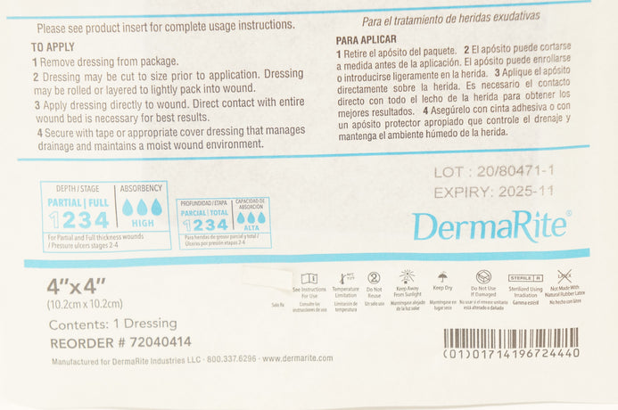 DermaRite 72040414 DermaBlue Antimicrobial Foam Wound Dressing 4x4in