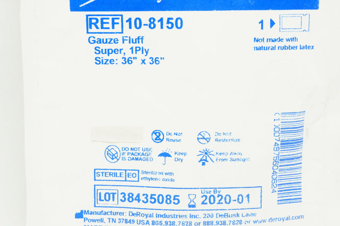 DeRoyal 10-8150 Gauze Fluff Super, 1Ply, 36 x 36inch (x)