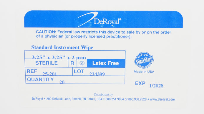 - DeRoyal 25-201 Standard Instrument Wipe 3.25inch x 3.25inch x 2mm - Box of 16