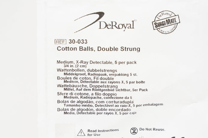 - DeRoyal 30-033 Cotton Balls, Double Strung, Medium, 3/4inch - Pack of 5