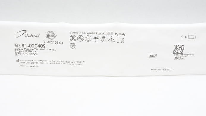 - DeRoyal 81-020409 General Purpose Temperature Probe 9 Fr, 400 Series