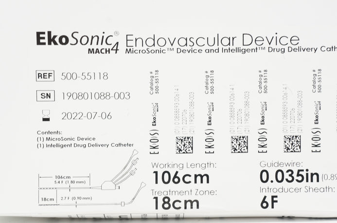 - Ekos 500-55118 EkoSonic Match 4 Endovascular Device 6F 106cm 18cm 0.035inch