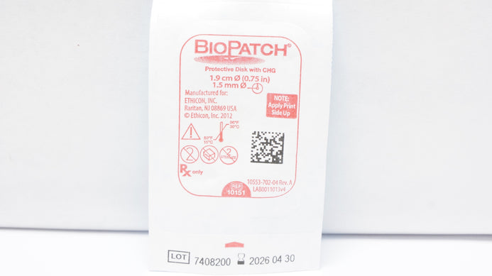 - Ethicon 10151 BioPatch Protective Disk with CHG 0.75inch x 1.5mm