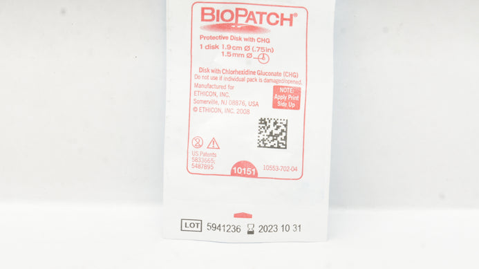 - Ethicon 10151 BioPatch Protective Disk with CHG 0.75inch x 1.5mm (x)