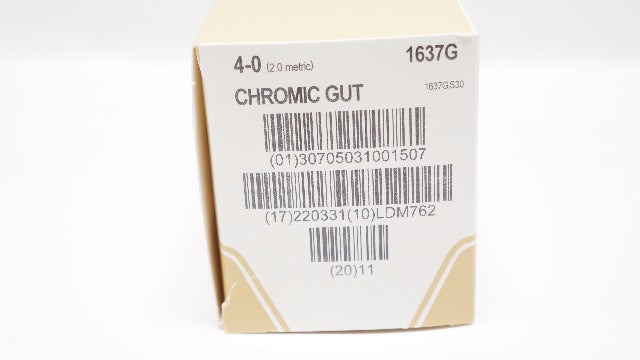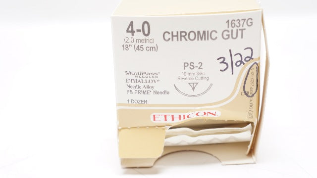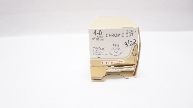 Ethicon 1637G 4-0 CHROMIC GUT, PS-2, 3/8c 19mm, 18inch (x) - Box of of 12
