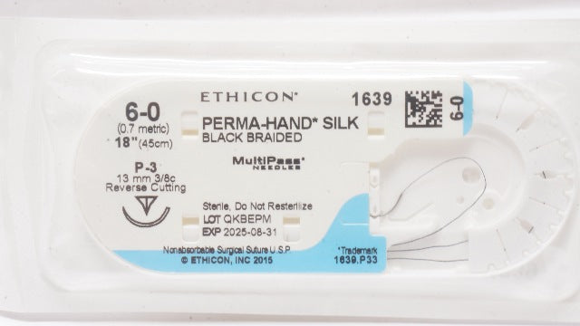 - Ethicon 1639 6-0 PERMA-HAND SILK P-3 13mm 3/8c Reverse Cutting 18inch
