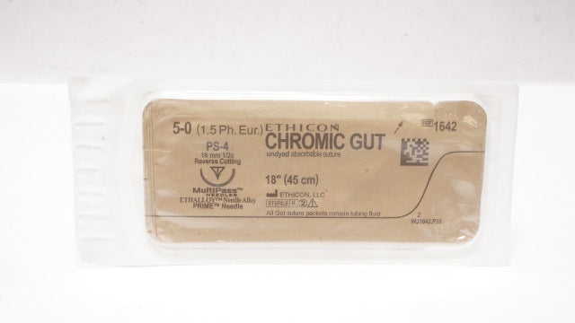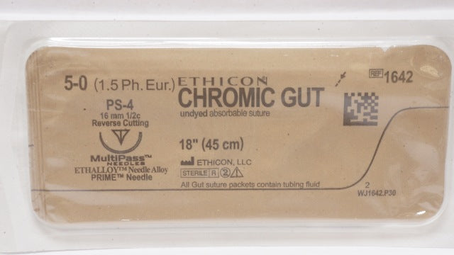Ethicon 1642 5-0 Chromic Gut, PS-4, 16mm 1/2c Reverse Cutting, 18inch
