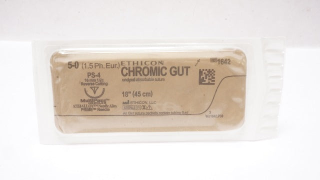 Ethicon 1642 5-0 Chromic Gut, PS-4, 16mm 1/2c Reverse Cutting, 18inch