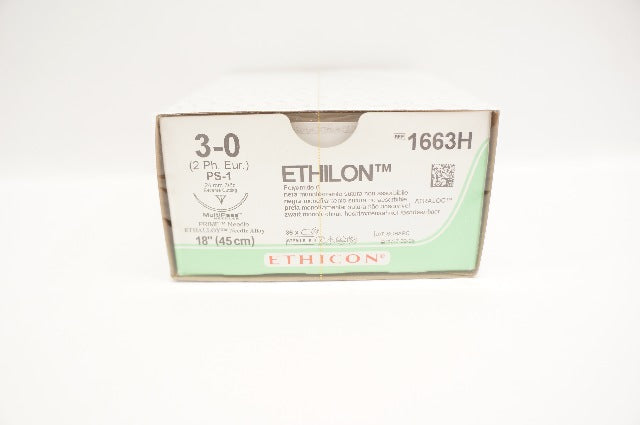 - Ethicon 1663H 3-0 ETHILON PS-1 24mm 3/8c Reverse Cutting 18inch - Box of 36