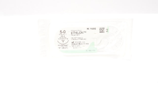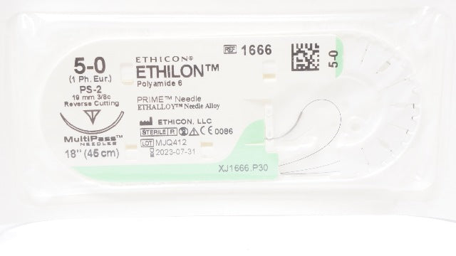 - Ethicon 1666 5-0 Ethilon Stre PS-2 19mm 3/8c Reverse Cutting, 18inch