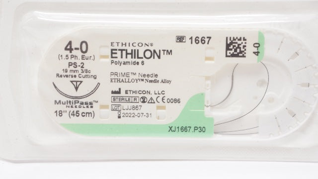 - Ethicon 1667 4-0 ETHILON Polyamide 6 Stre PS-2 19mm 3/8c Reverse Cutting,18In(x)